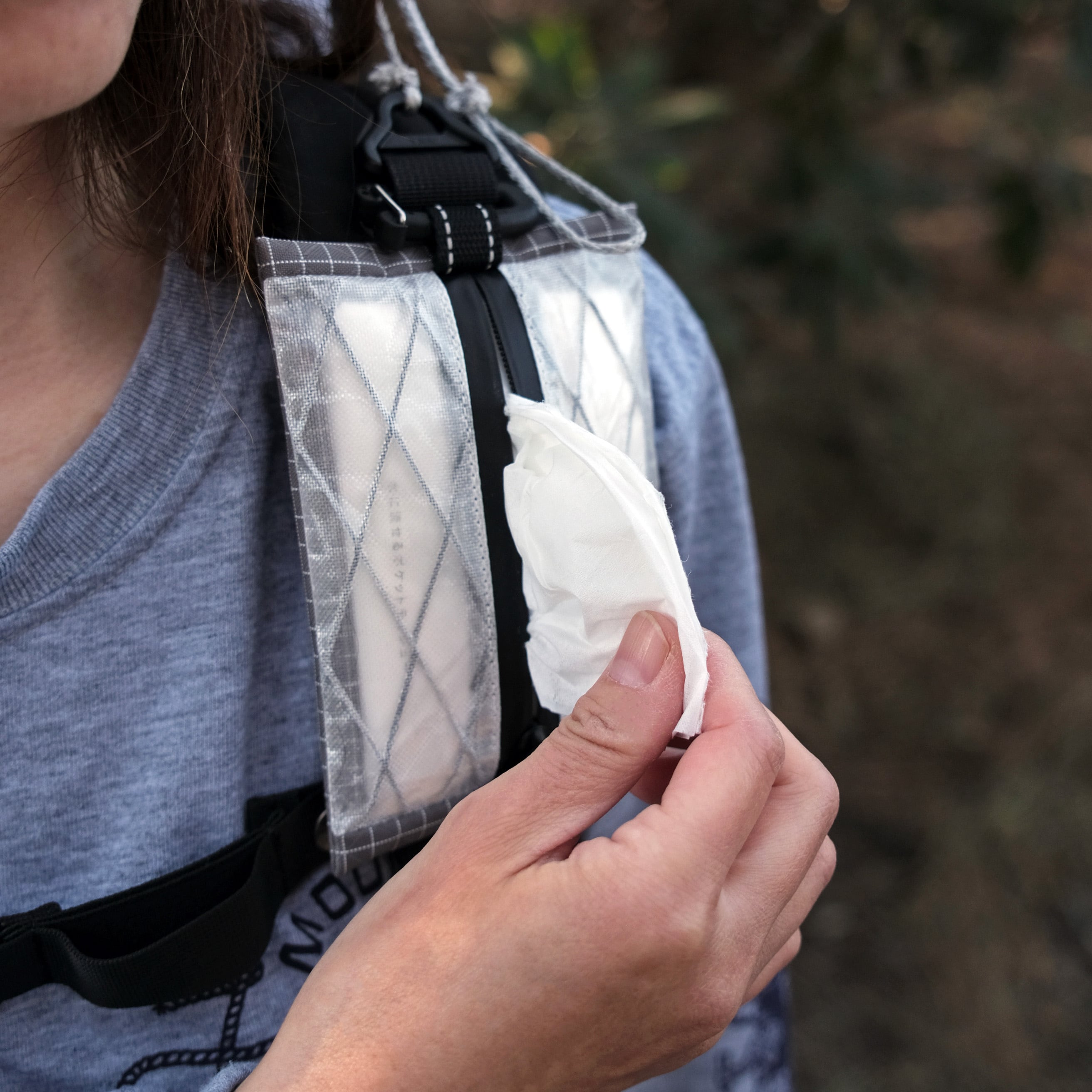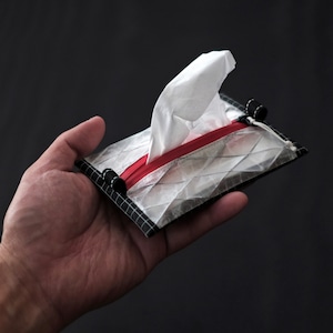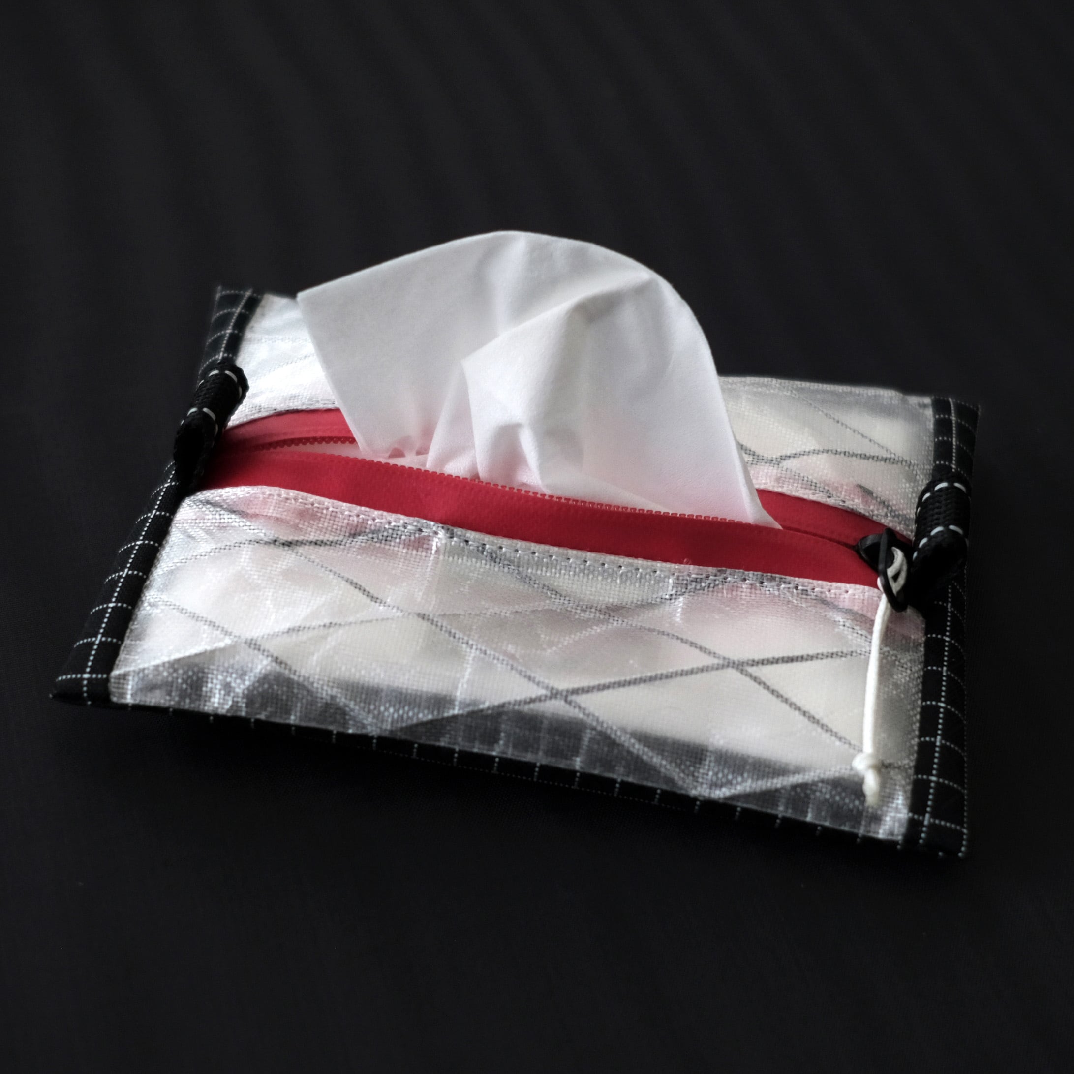 試しにX-Pac UX10を採用してみた。約9g。軽さも強度も申し分ない。HDPE Gridstopとの相性も良い。どこかシットリした生地感がティッシュと合う。無性に人にティッシュをオススメしたくなる(自分だけか)。