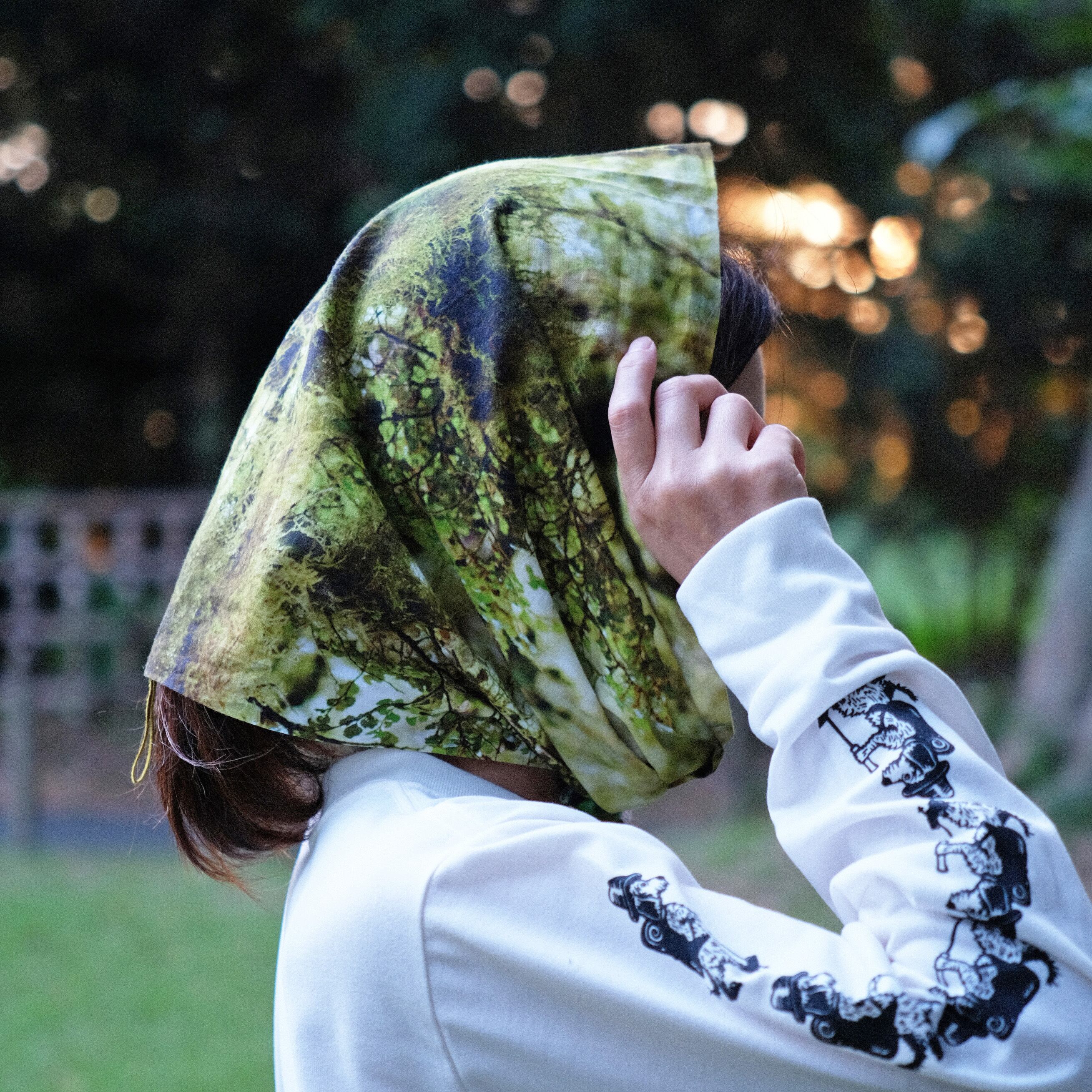 印象的だった苔むした森の風景を手ぬぐいにしてみました。
